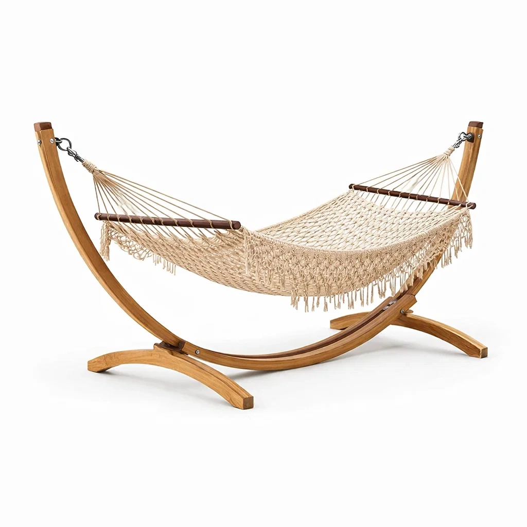 Colore: Amaca color crema, supporto in legno naturale.